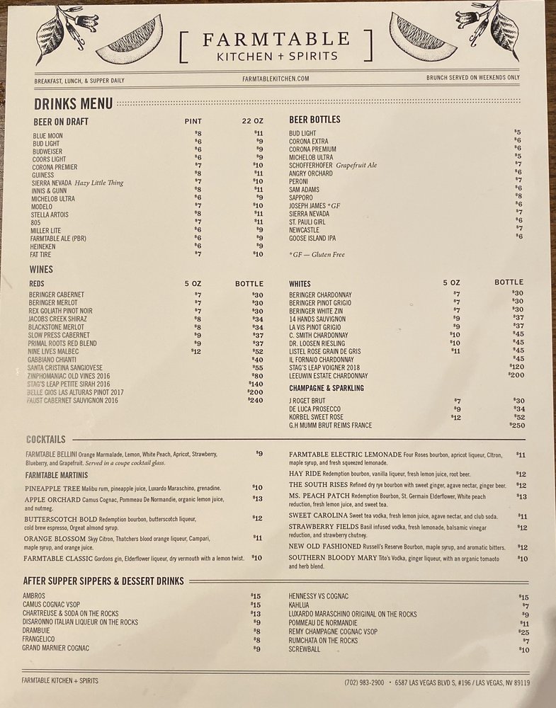 Welcome to Farmtable Kitchen + Spirits, a vibrant eatery located at 6587 Las Vegas Blvd S, renowned for its New American cuisine and spirited atmosphere. The menu is a delightful blend of iconic breakfast, brunch, and lunch offerings that reflect a Southern charm.